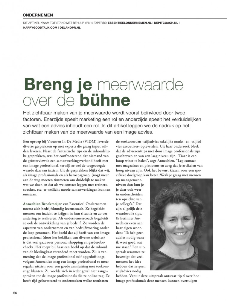 Reagerend op een oproep op Vrouwen in de Media (VIDM) ben ik geïnterviewd over het thema hoe je meerwaarde kunt hebben en laten zien ‘op de bühne’.
